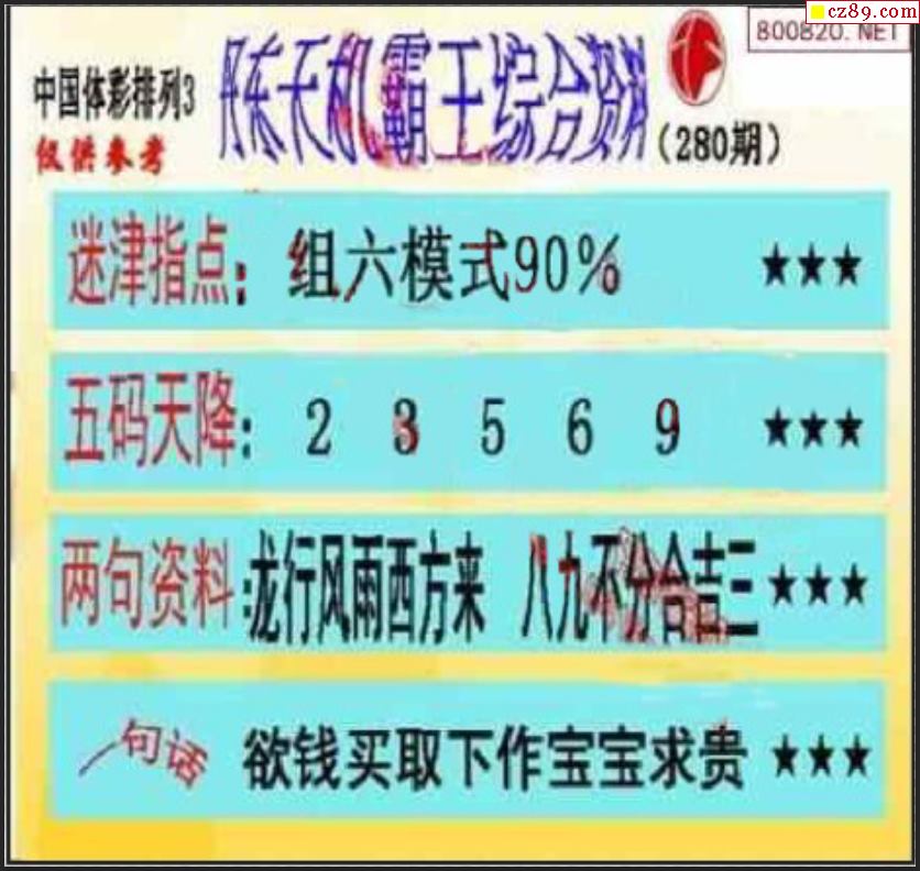 2023年280期牛彩网体彩P3画迷图谜汇总分享