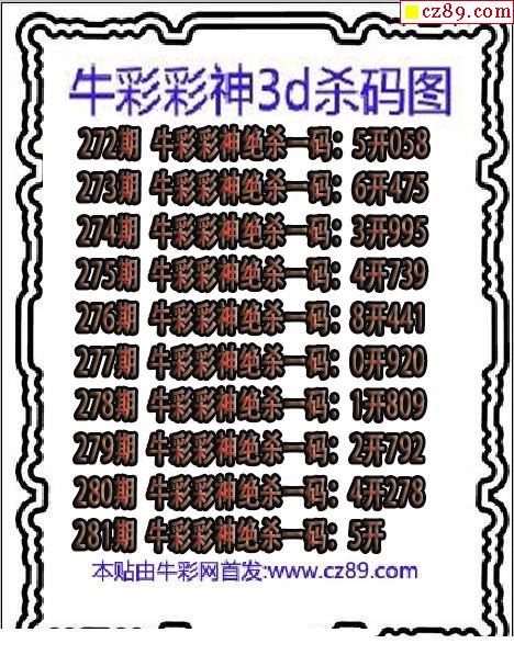 牛彩版3D预测彩报图26年022期打印版