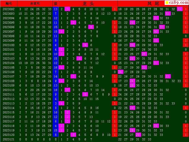 23年121期飞向阳光福彩双色球预测图表汇总