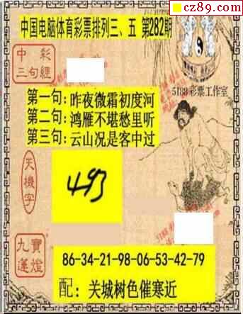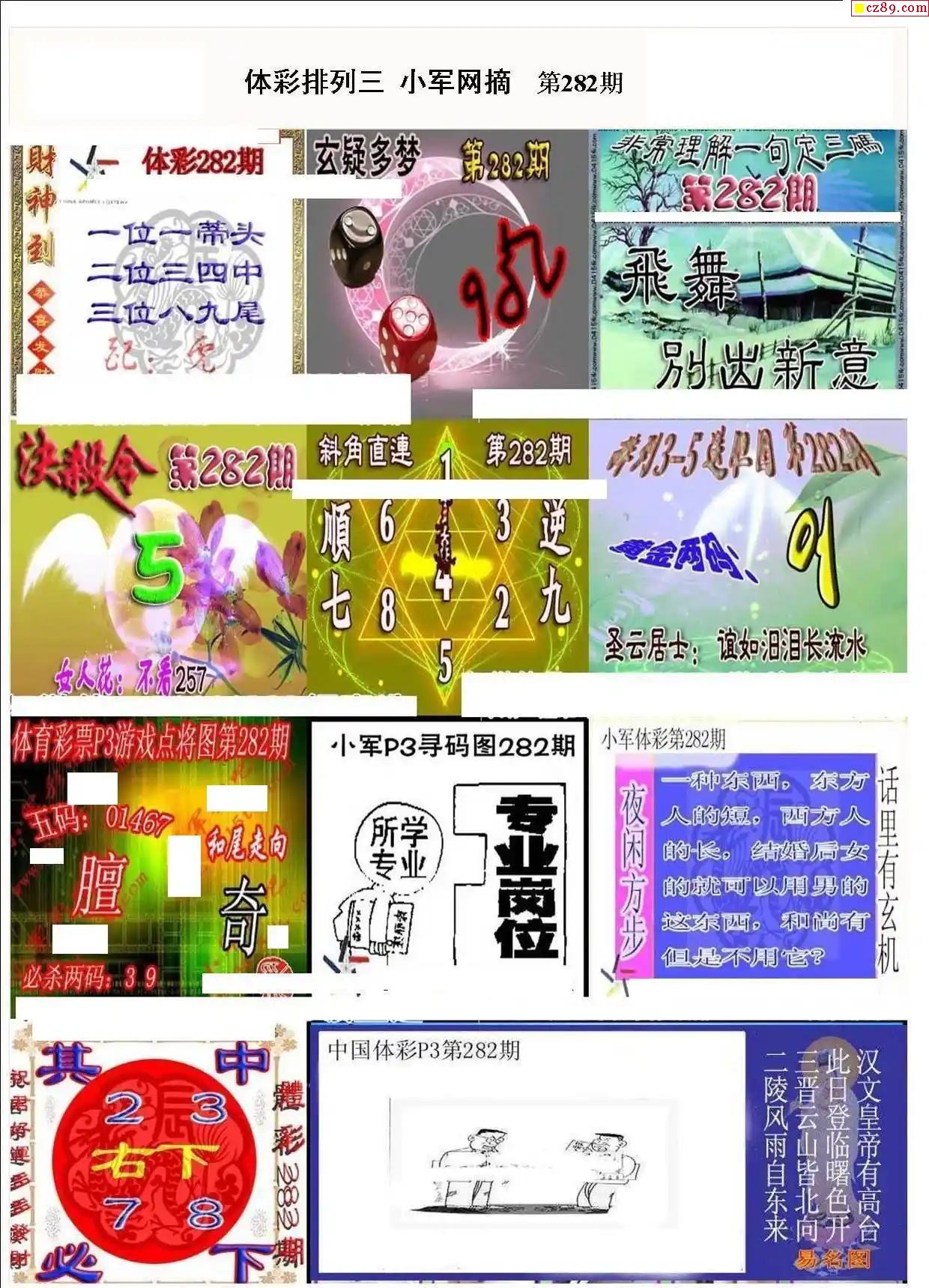 2023年282期牛彩网体彩P3画迷图谜汇总分享