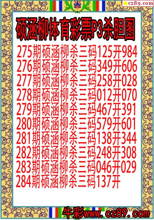 2023年284期体彩P3胆码杀码原创图总汇