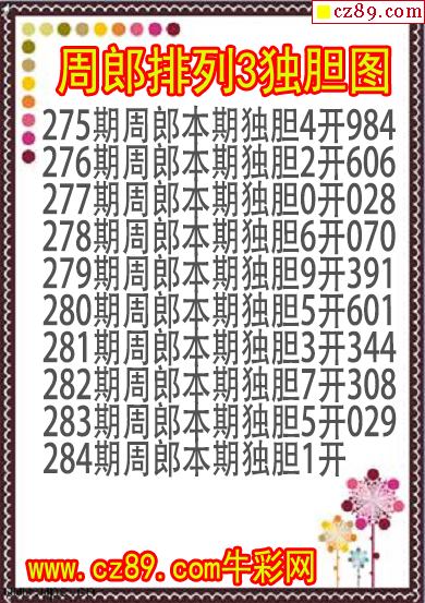 2025年334期牛彩网体彩P3画迷图谜汇总分享