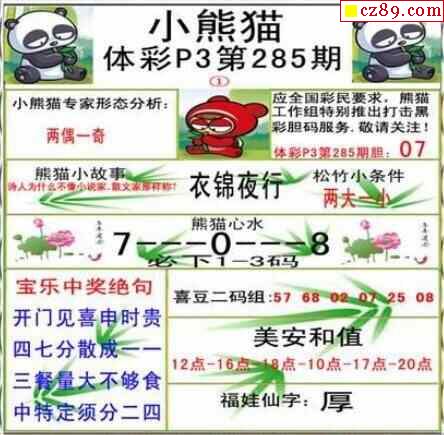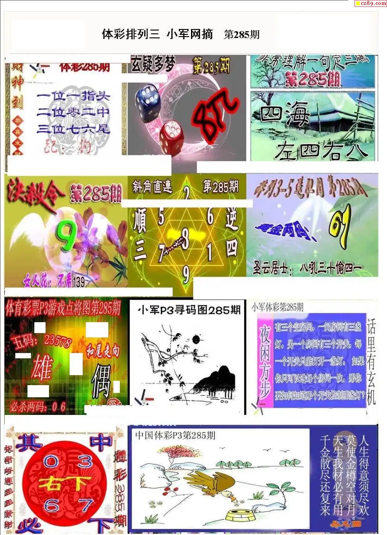 2023年285期牛彩网体彩P3画迷图谜汇总分享