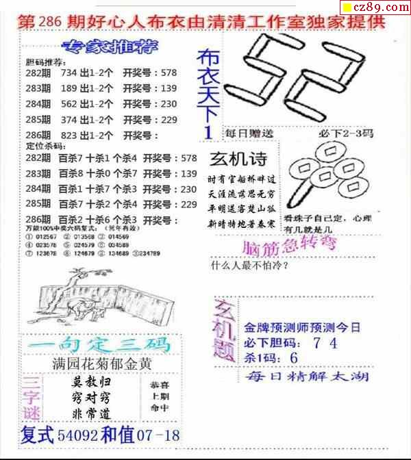 福彩3D2025332期 祁连牧哥百财纳福胆码图谜推荐