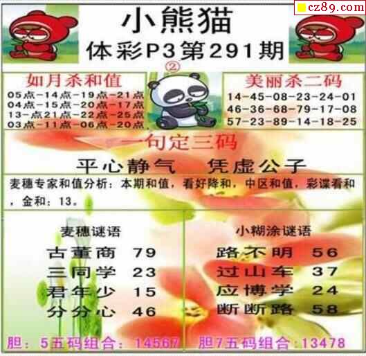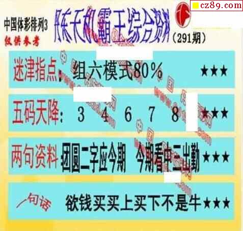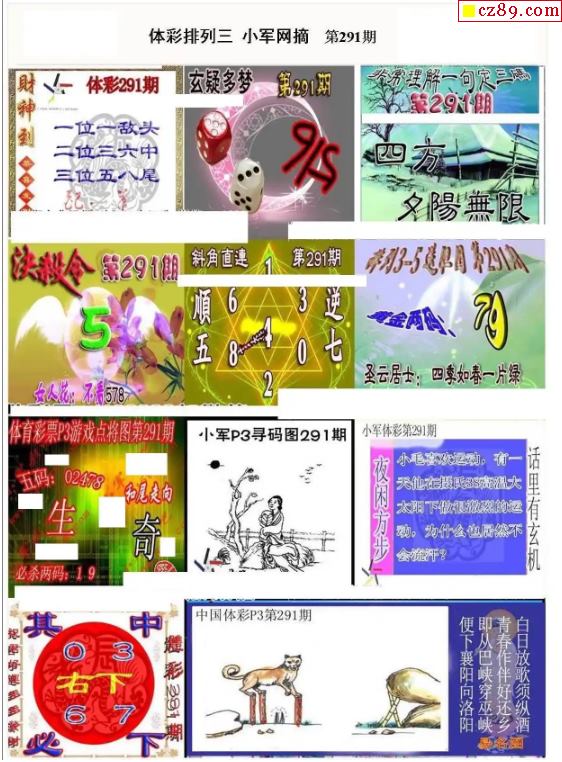 2023年291期牛彩网体彩P3画迷图谜汇总分享