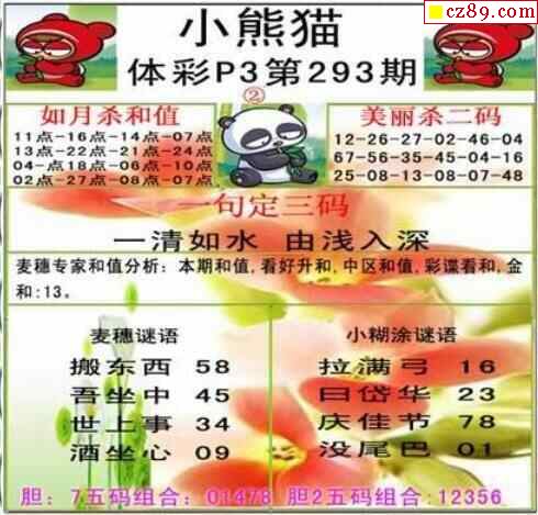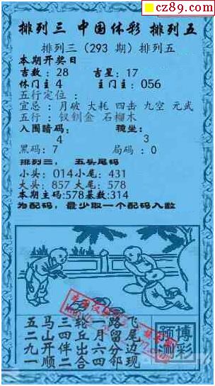 2023年293期牛彩网体彩P3画迷图谜汇总分享