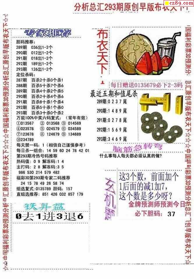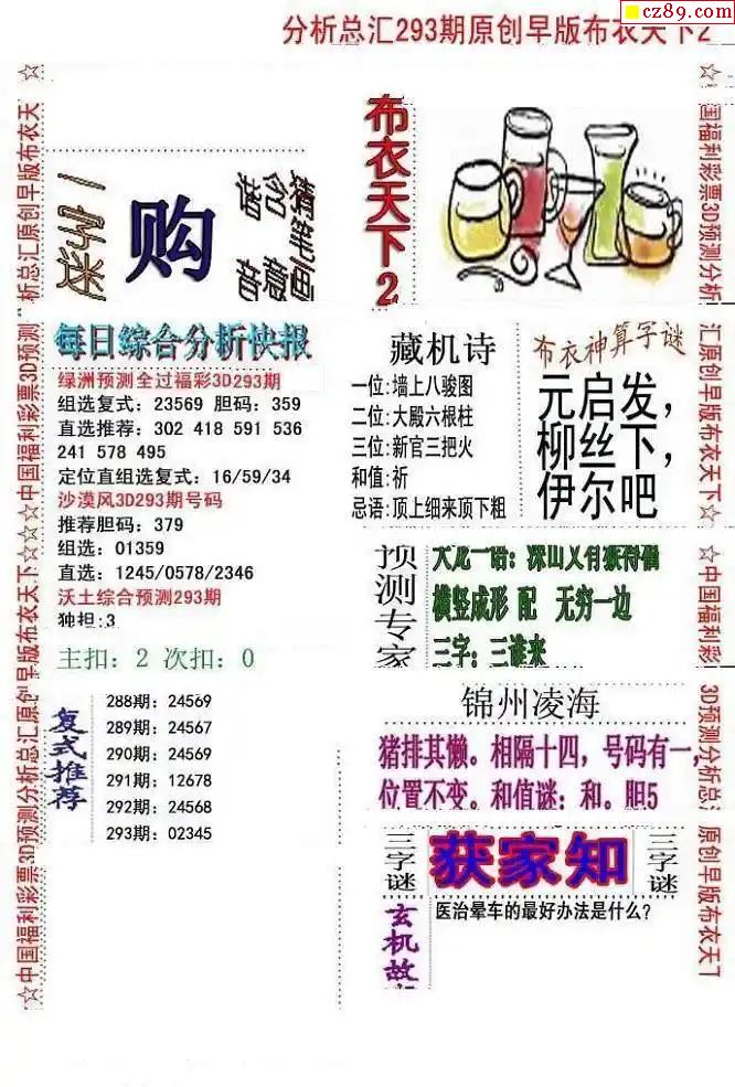 牛彩版3D字谜彩报图26年068期打印版