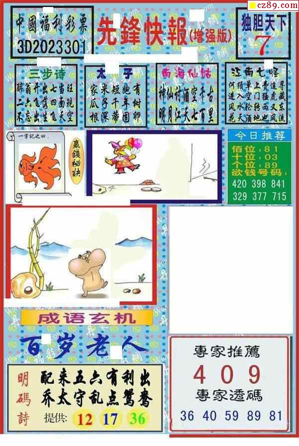 牛彩版3D字谜彩报图25年332期打印版