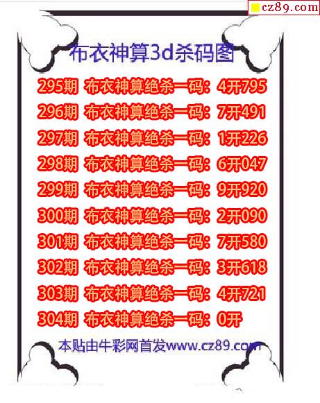 牛彩版3D预测彩报图25年327期打印版