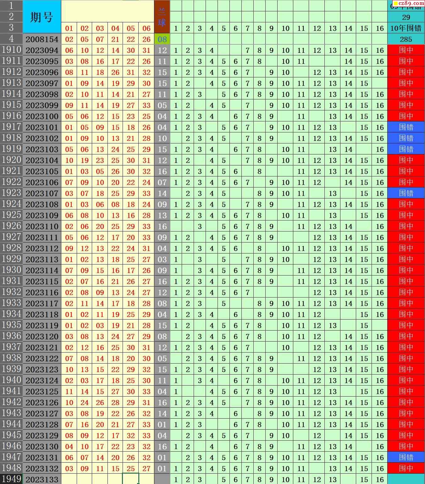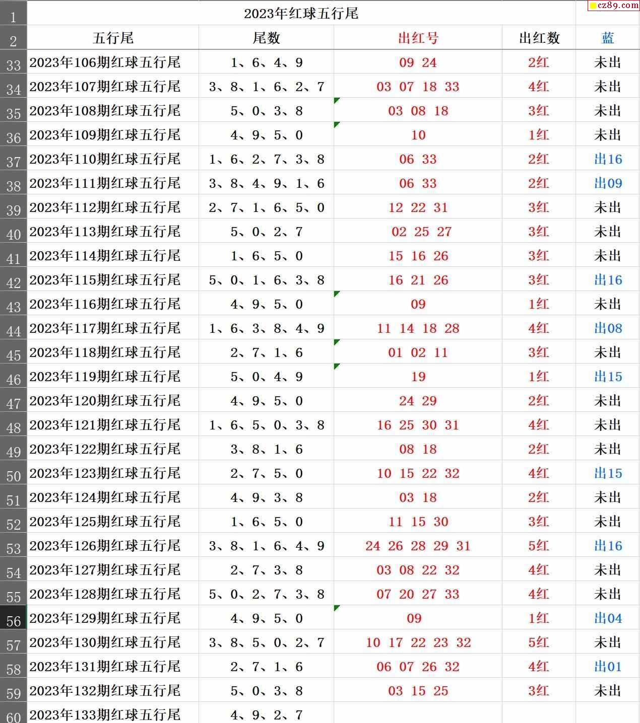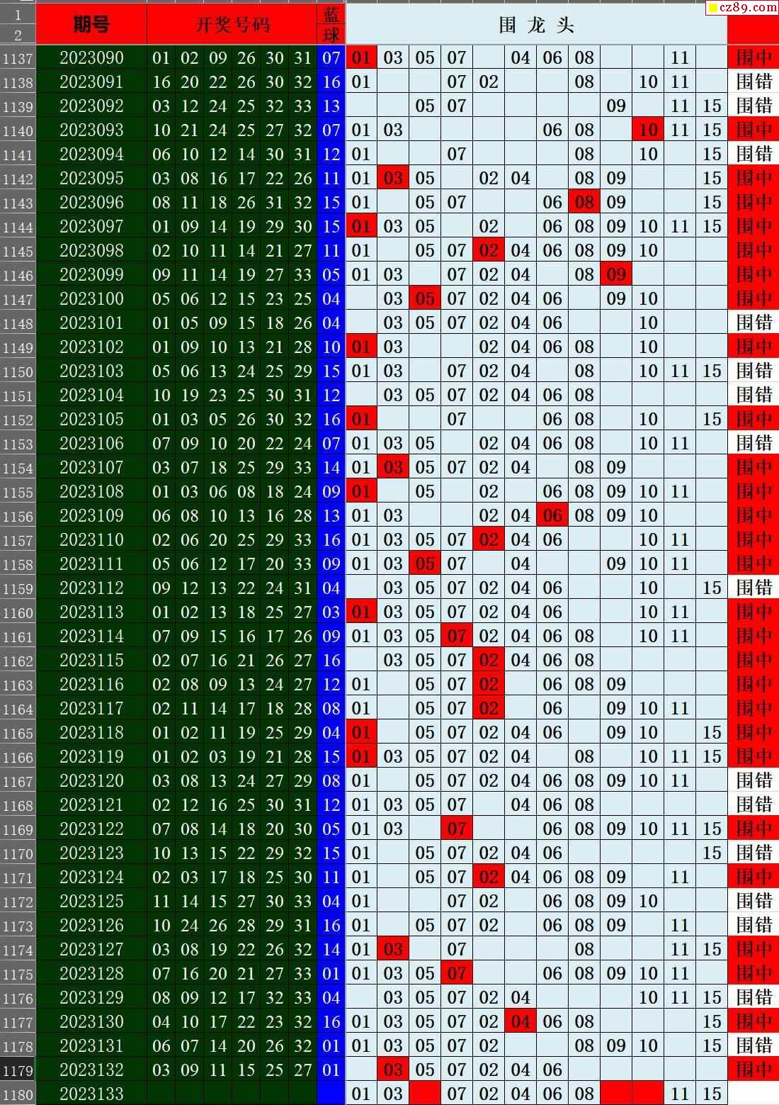 23年133期秋雨龙头凤尾走势图表