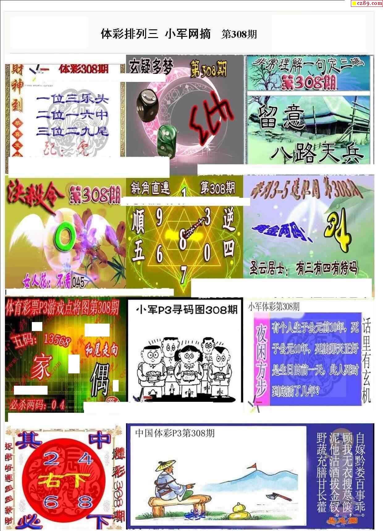 2023年308期牛彩网体彩P3画迷图谜汇总分享