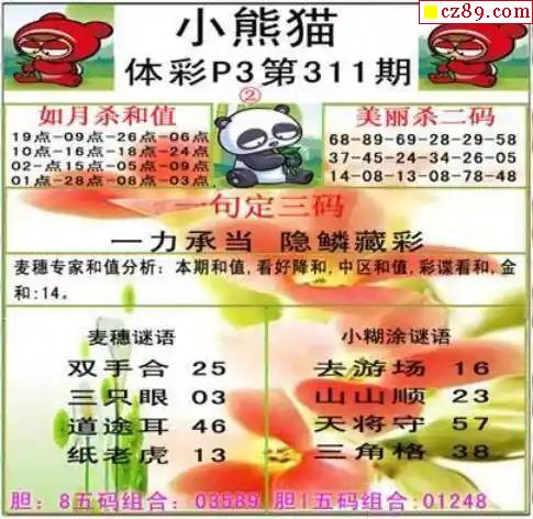 2023年311期牛彩网体彩P3画迷图谜汇总分享