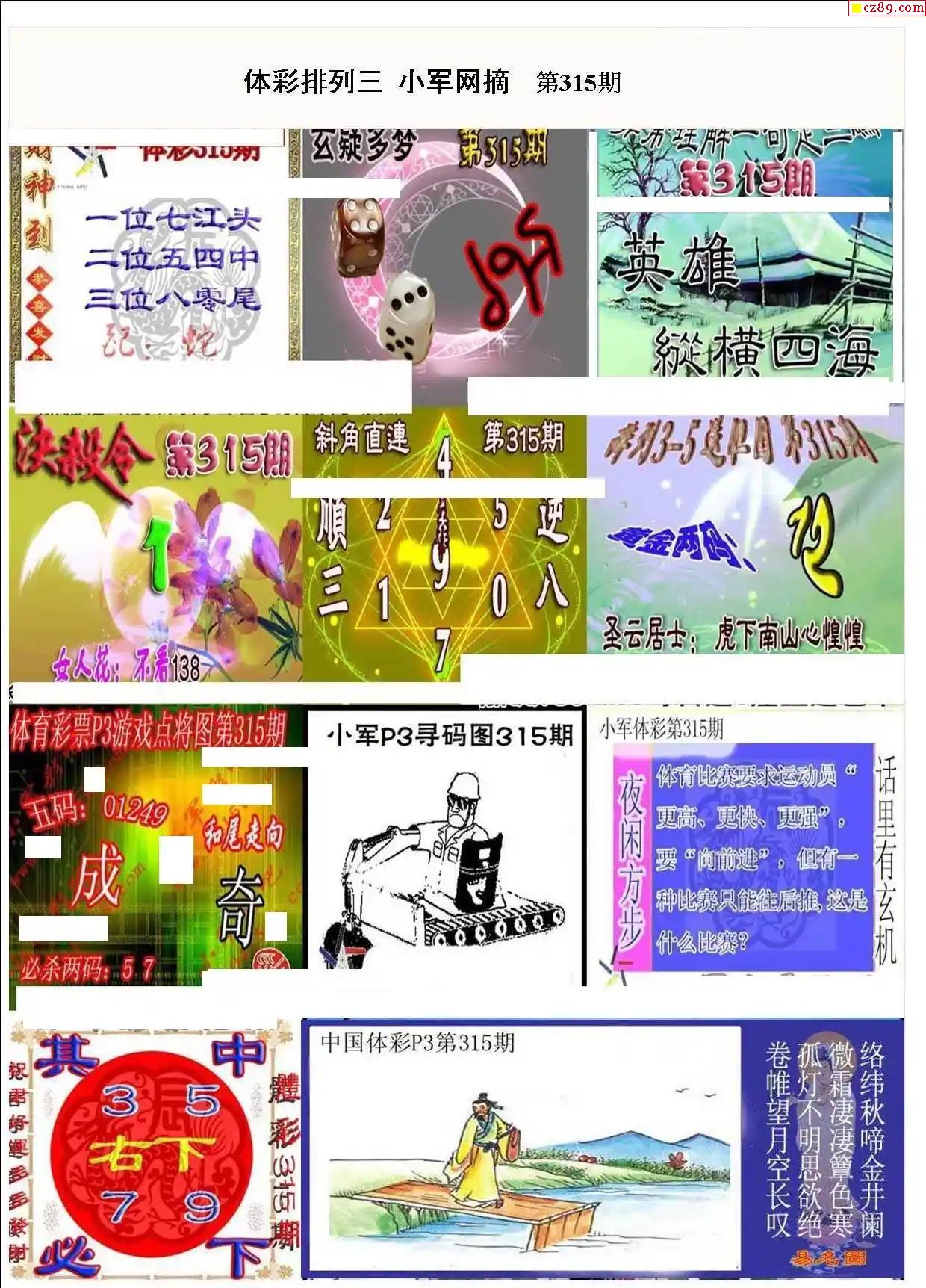 2023年315期牛彩网体彩P3画迷图谜汇总分享