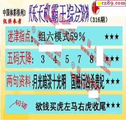 2023年316期牛彩网体彩P3画迷图谜汇总分享