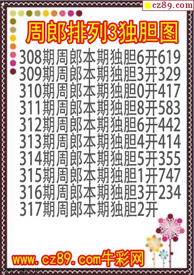 2025年343期牛彩网体彩P3画迷图谜汇总分享