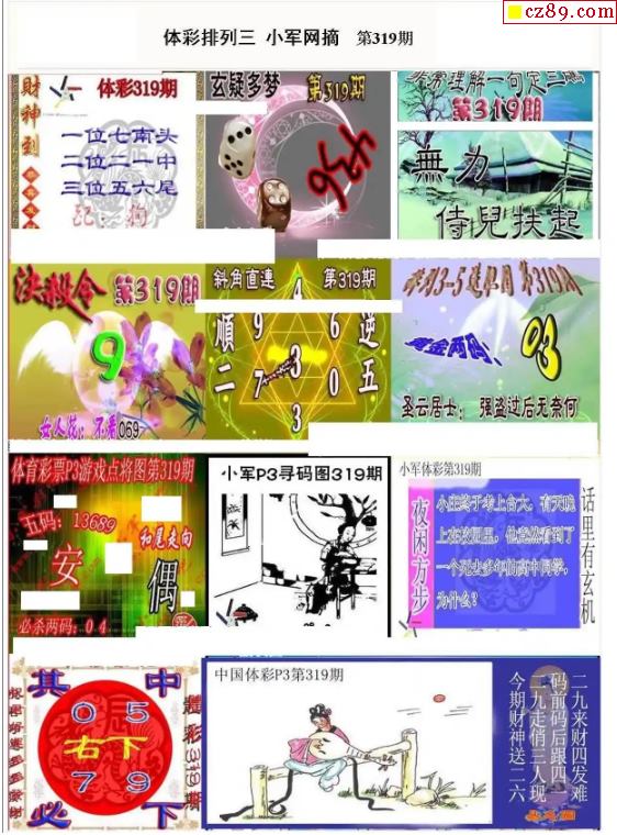 2023年319期牛彩网体彩P3画迷图谜汇总分享