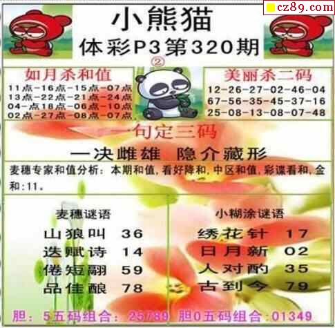 2023年320期牛彩网体彩P3画迷图谜汇总分享