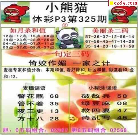 2023年325期牛彩网体彩P3画迷图谜汇总分享