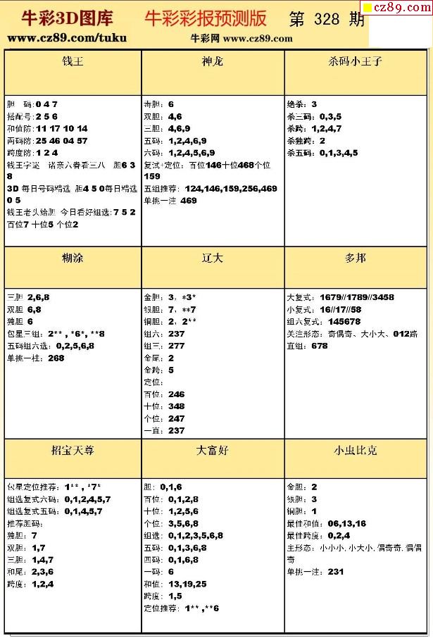 牛彩版3D预测彩报图23年328期打印版