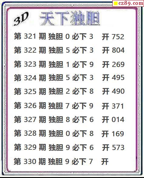 天下独胆2025329期3d图谜