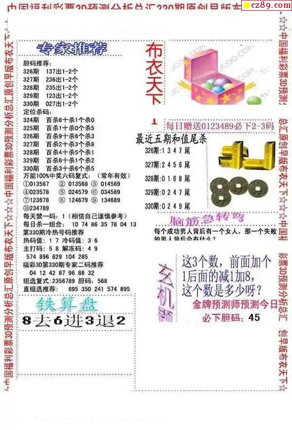 福彩3D2025328期 祁连牧哥百财纳福胆码图谜推荐