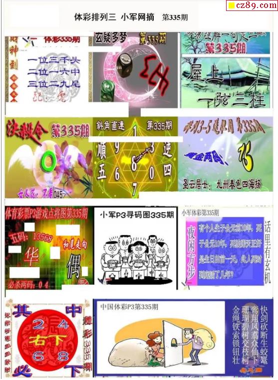 2023年335期牛彩网体彩P3画迷图谜汇总分享