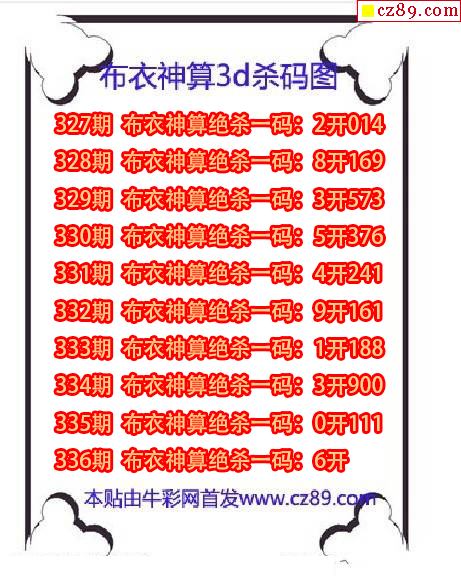 牛彩版3D预测彩报图25年326期打印版