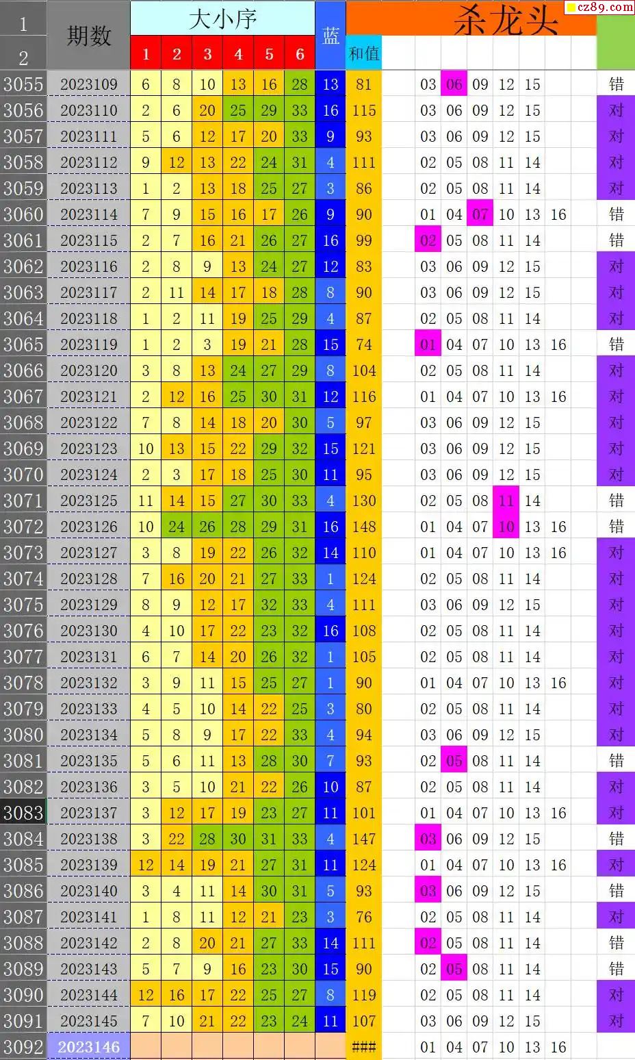 23年146期秋雨龙头凤尾走势图表