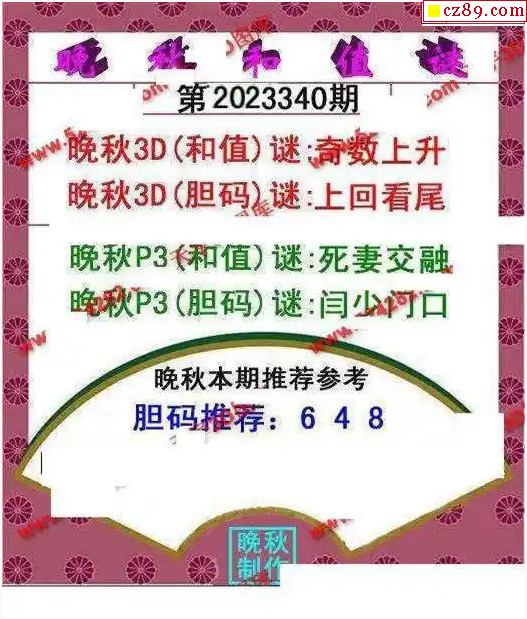 2023340期3d图谜汇总(六)