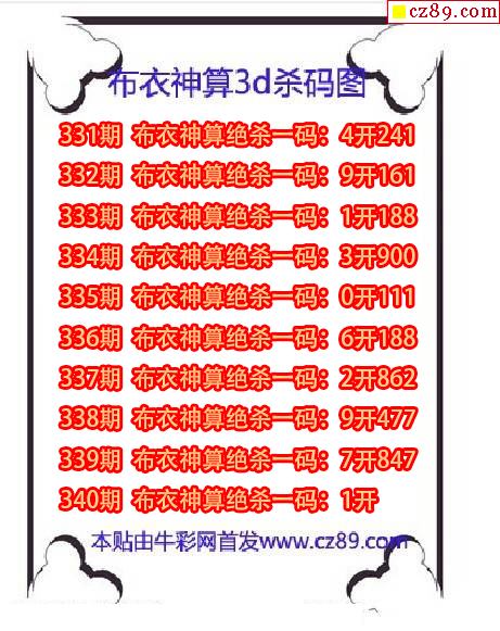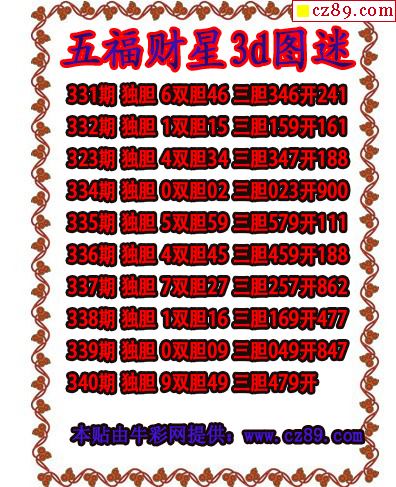 福彩3D2025334期 祁连牧哥百财纳福胆码图谜推荐