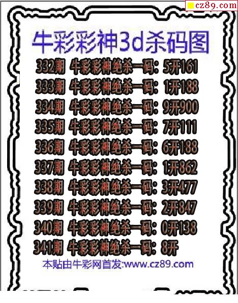 牛彩版3D预测彩报图26年016期打印版