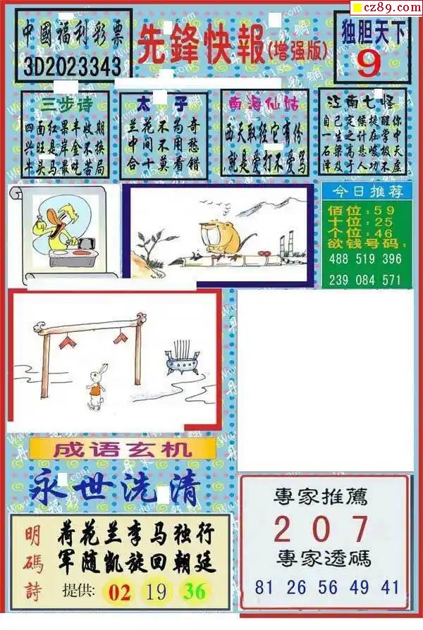 牛彩版3D字谜彩报图25年332期打印版
