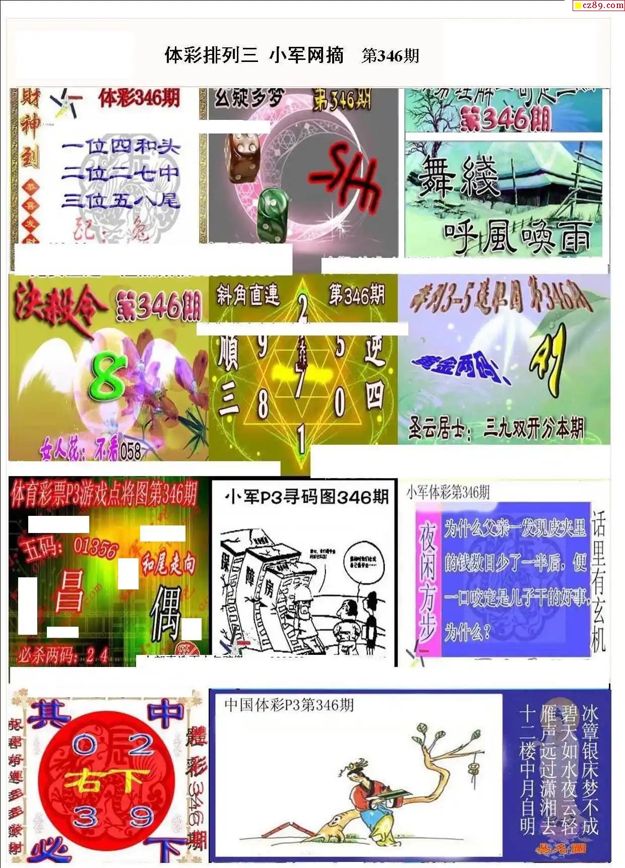 2023年346期牛彩网体彩P3画迷图谜汇总分享