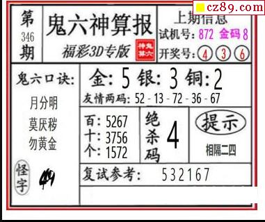 福彩3D2025332期 祁连牧哥百财纳福胆码图谜推荐