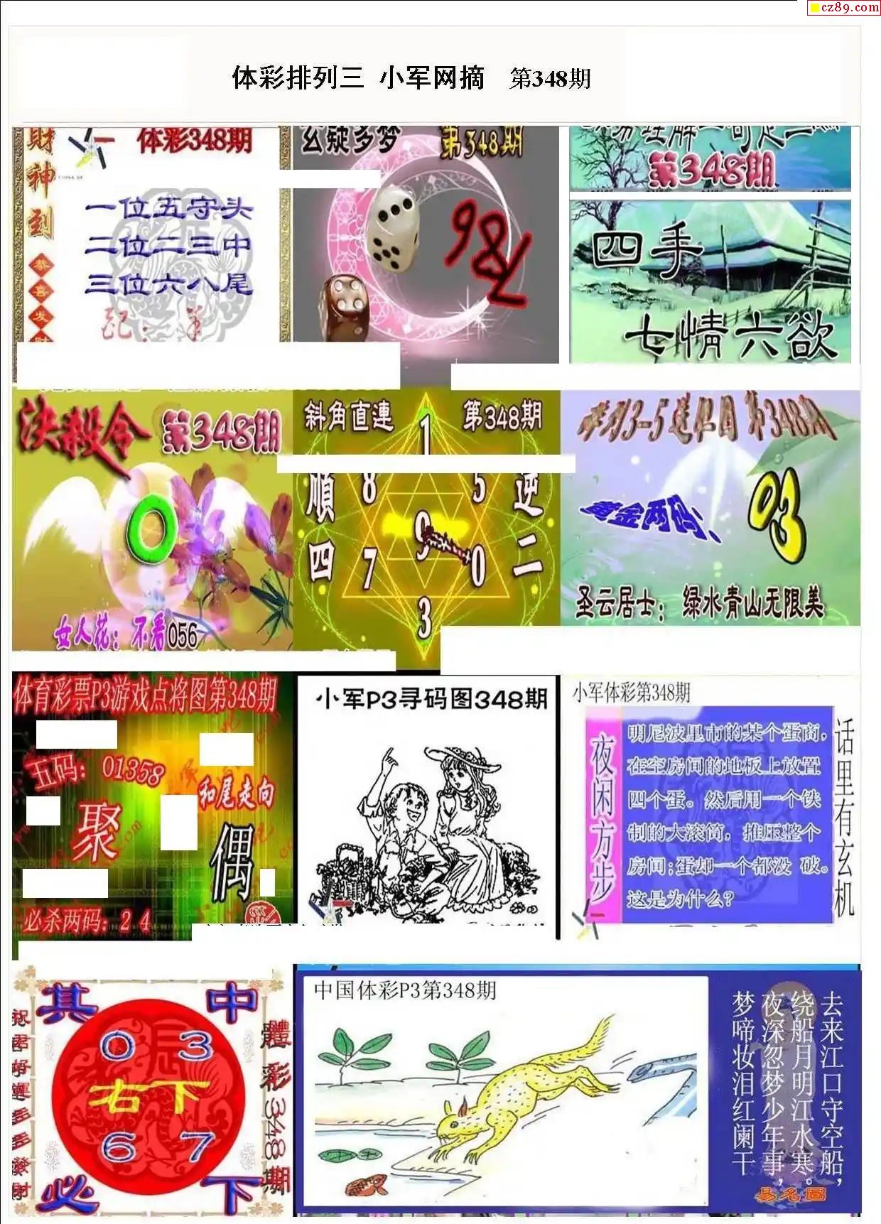 2023年348期牛彩网体彩P3画迷图谜汇总分享