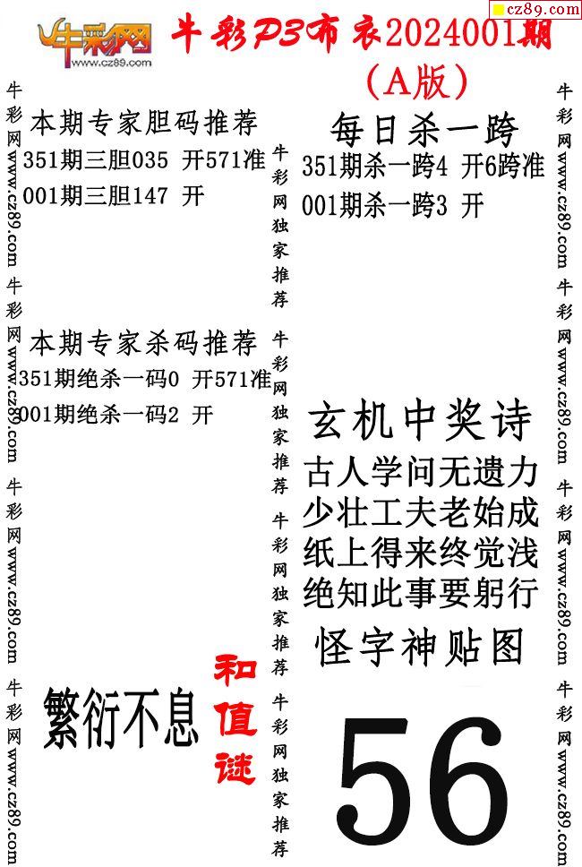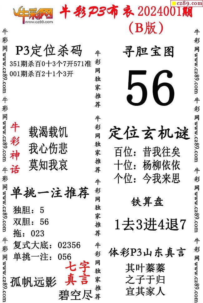 牛彩P3布衣25年328期AB版图谜(精华版)