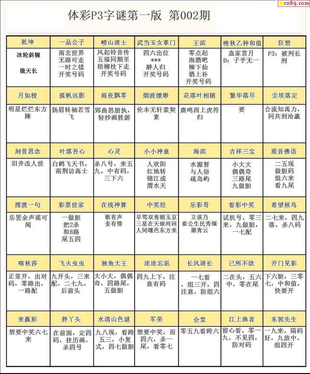 2024年002期牛彩网体彩P3画迷图谜汇总分享