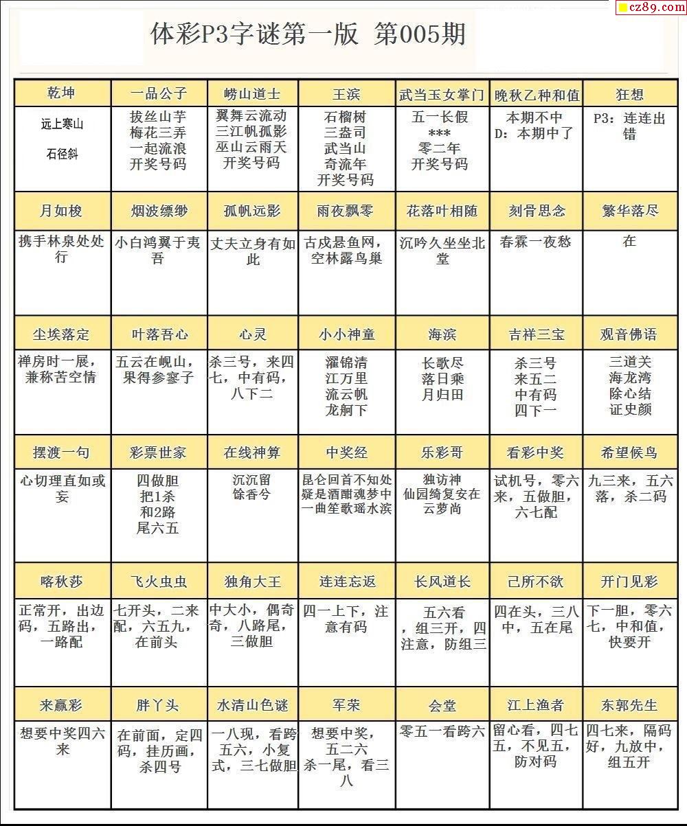 2024年005期牛彩网体彩P3画迷图谜汇总分享