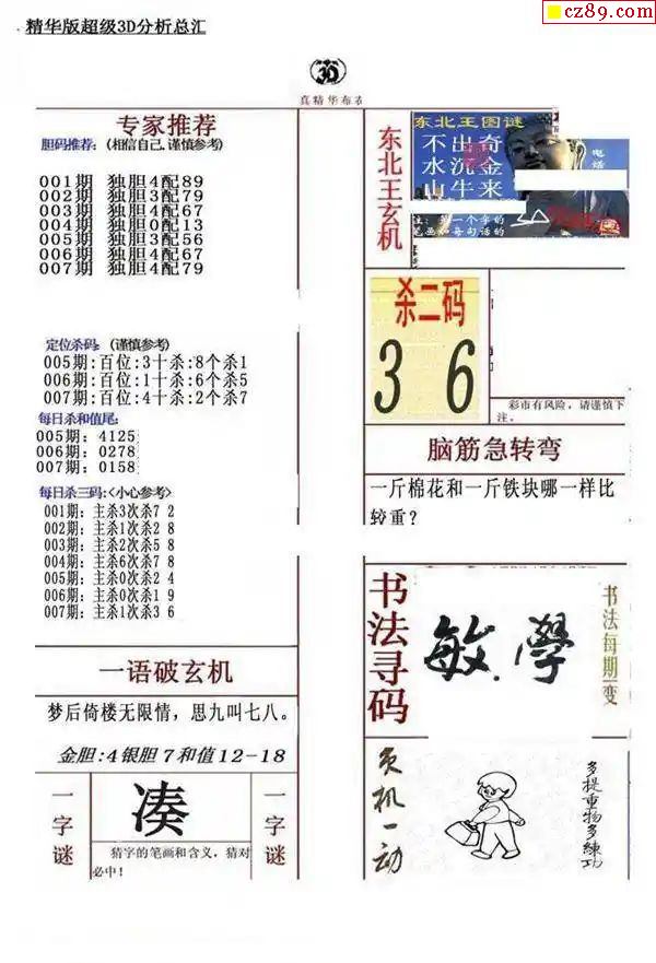杀手+鑫马快报+字迷汇总25年330期3d图谜