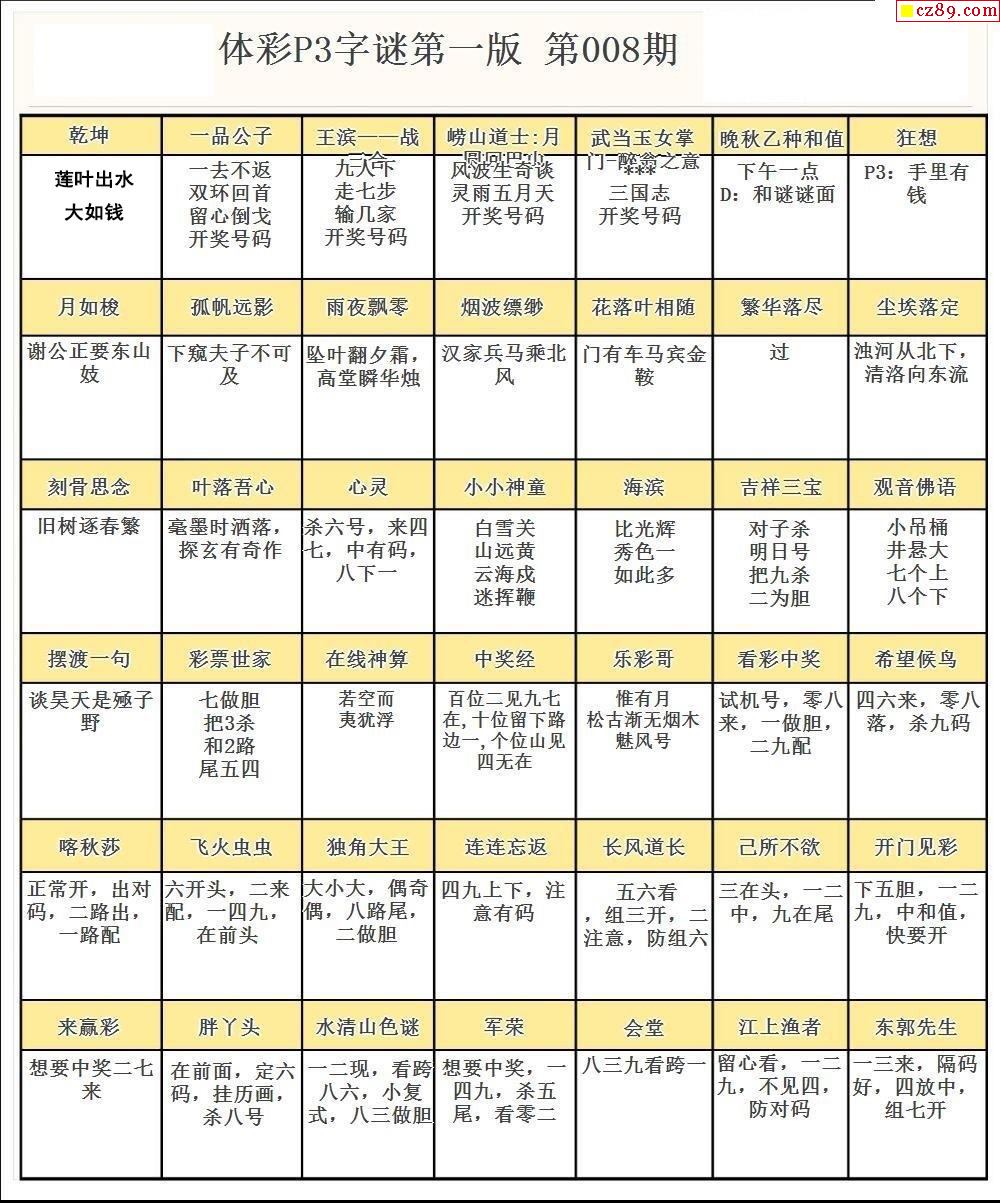 2024年008期牛彩网体彩P3画迷图谜汇总分享