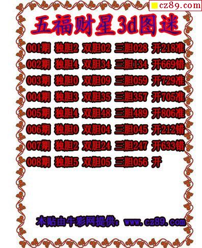 福彩3D2025334期 祁连牧哥百财纳福胆码图谜推荐