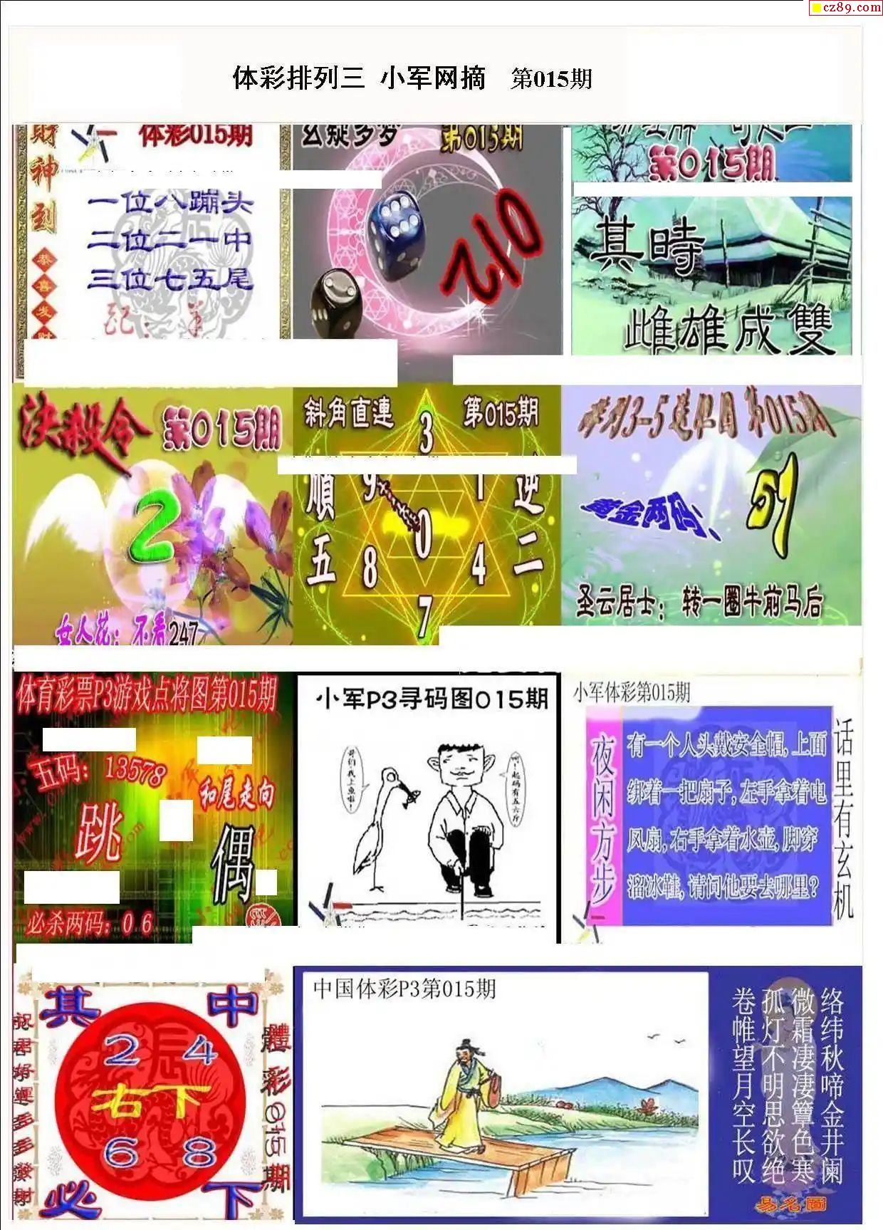 2024年015期牛彩网体彩P3画迷图谜汇总分享