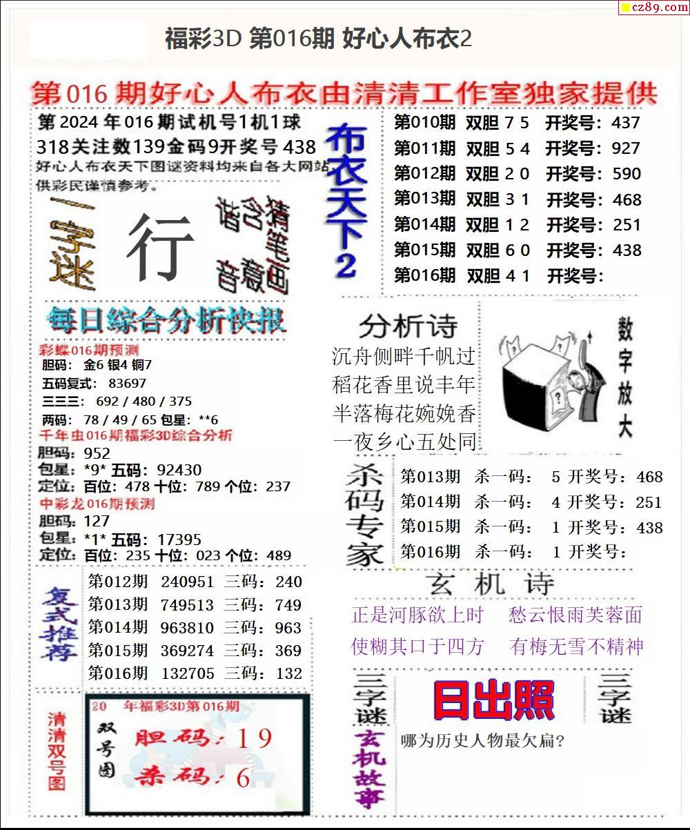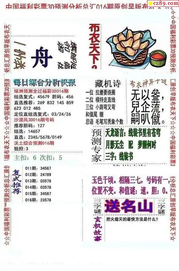 福彩3D2025326期 祁连牧哥百财纳福胆码图谜推荐