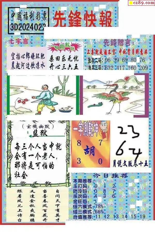 福彩3D2025328期 祁连牧哥百财纳福胆码图谜推荐