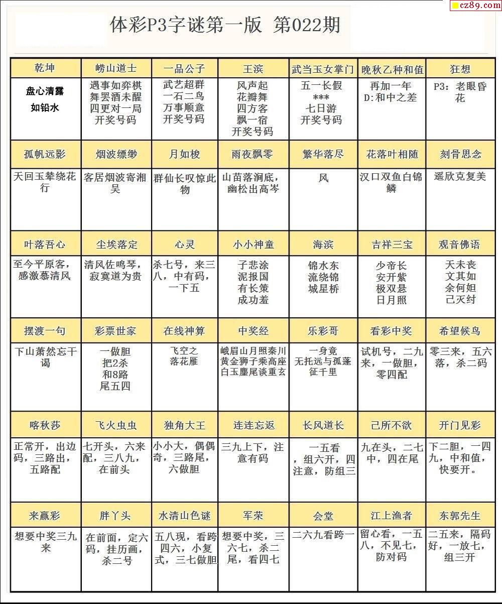2024年022期牛彩网体彩P3画迷图谜汇总分享