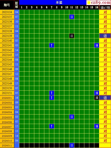 双色球2024011期阳光杀蓝汇总图表