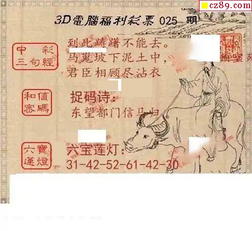 福彩3D2025327期 祁连牧哥百财纳福胆码图谜推荐