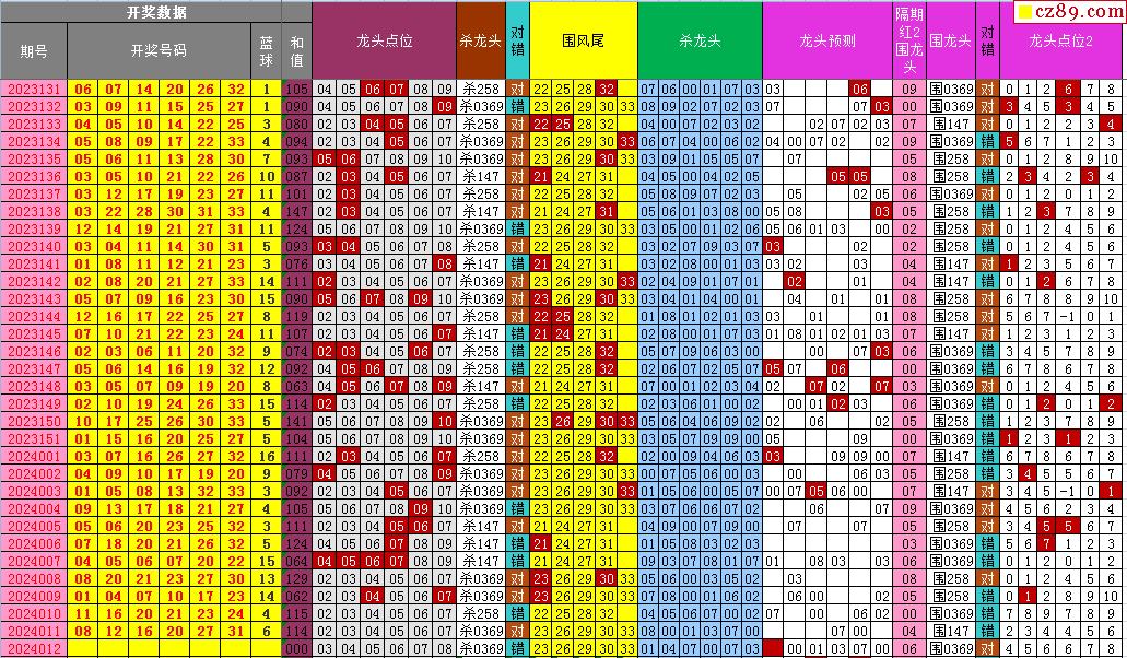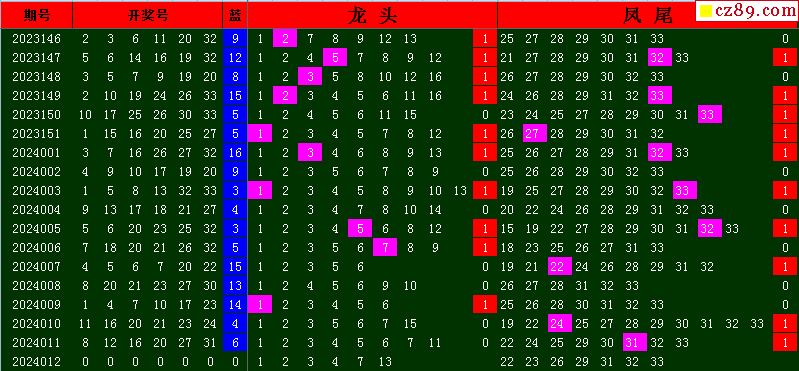 24年012期飞向阳光福彩双色球预测图表汇总