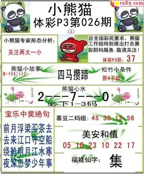 体彩P325年图迷329期 功夫熊猫内幕中奖图