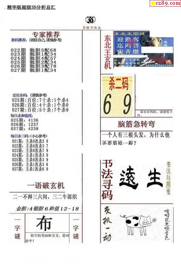 牛彩版3D字谜彩报图25年327期打印版